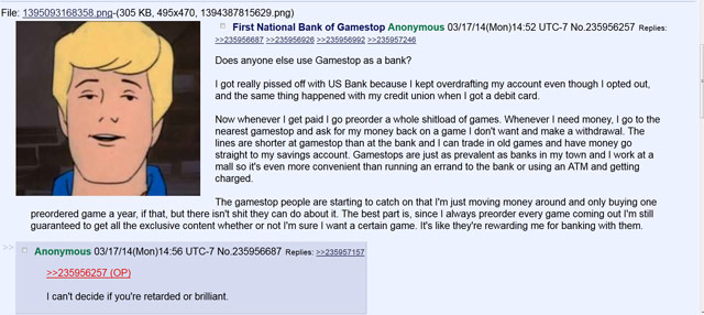 My fellow financial retards: Gamestop is actually a bank