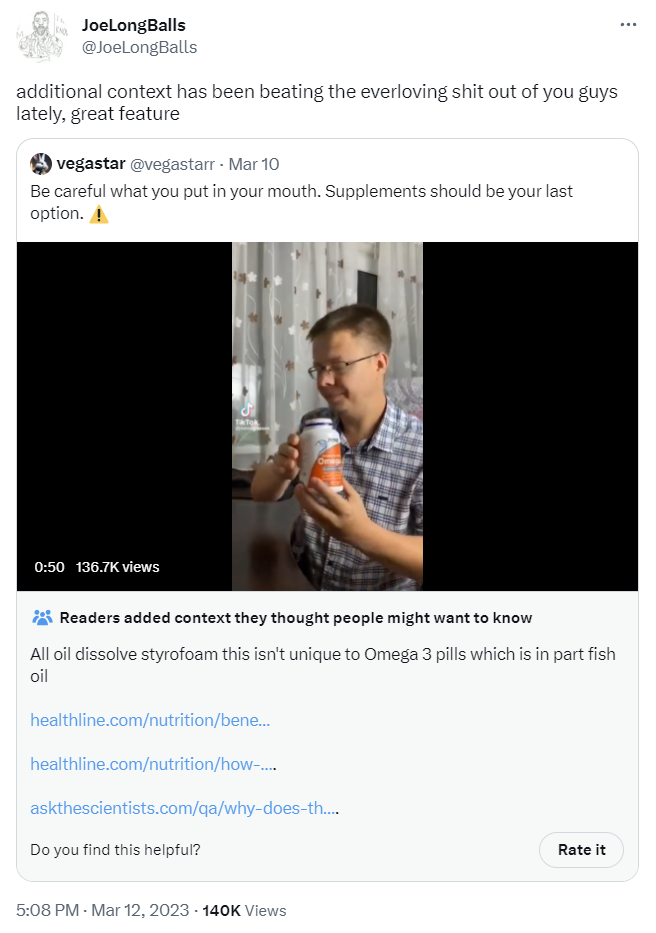 Only downside is occasionally some rube will “fact-check” an obvious joke. But most of the time it just calls people out for their bullshit, and the best part is locking replies can’t hide it.
