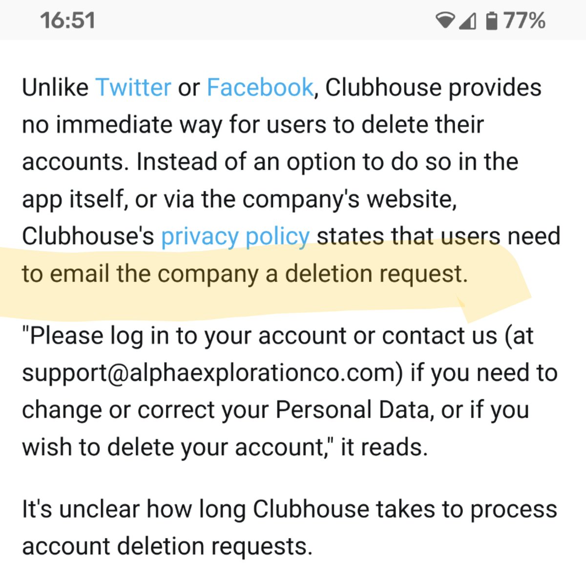 Але зьвязвацца з кампаніяй каб выдаліць акаунт — гэта цёмны патэрн і такіх прыкладаньняў трэба каб было як мага меней.