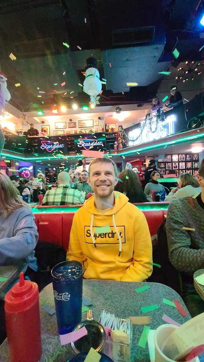 .@ElkaTasha знайшла круты дайнэр, дзе афіцыянтамі працуюць былыя акторы брадвэю. Яны сьпяваюць партыі з мюзыклаў, а потым з усьмешкай прыносяць табе вафлі 😍