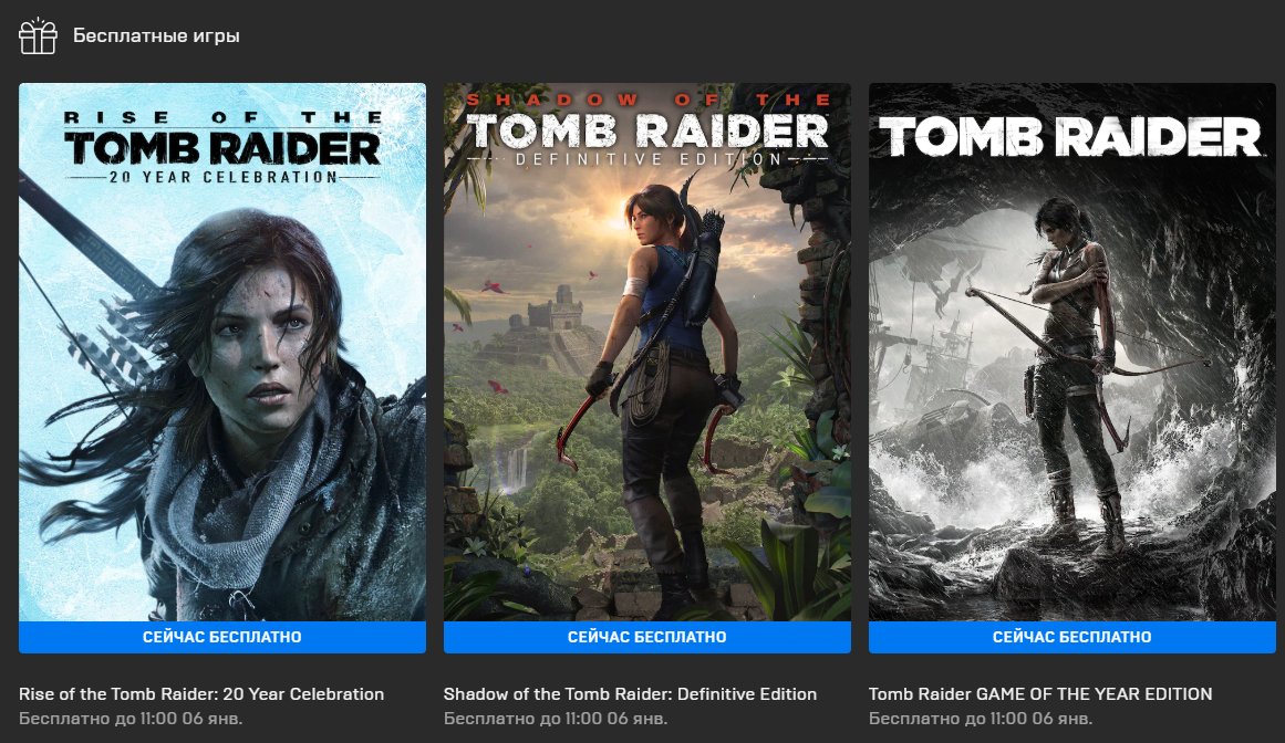 Epic Games Store раздае 3 новыя гульні па Tomb Rider!