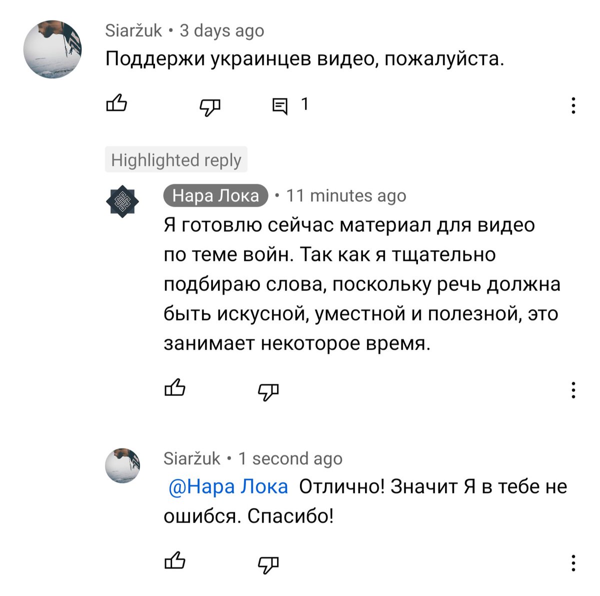 Ранеĭ на патрыёне падтрымліваў расеĭца каторы запісваў добрыя відэа наконт будызму. Спытаў у яго пра падтрымку украінцаў — маўчыць. Ты зрабіў своĭ выбар.