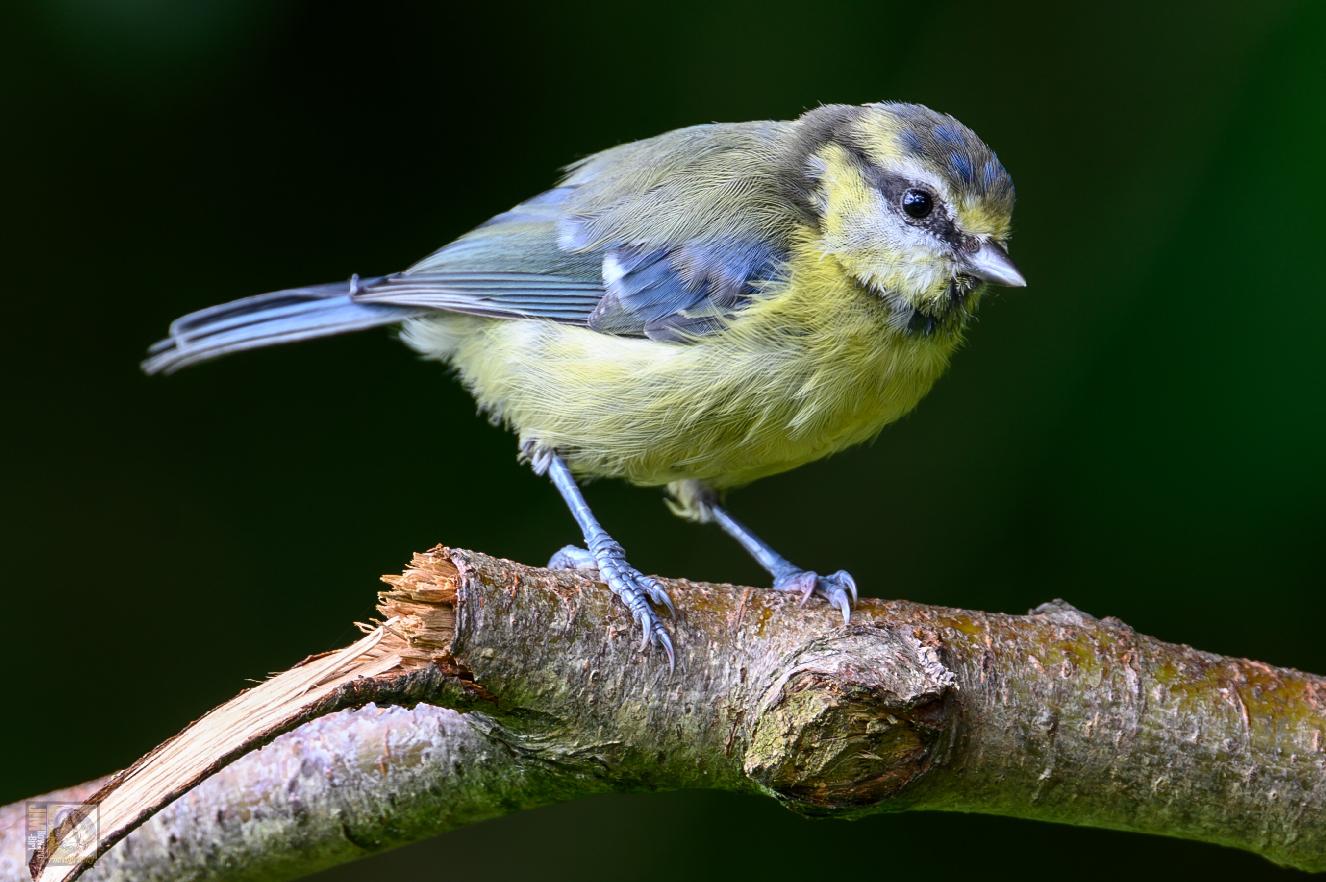 A Juvenile Bluetit with its adult feathers coming along nicely.