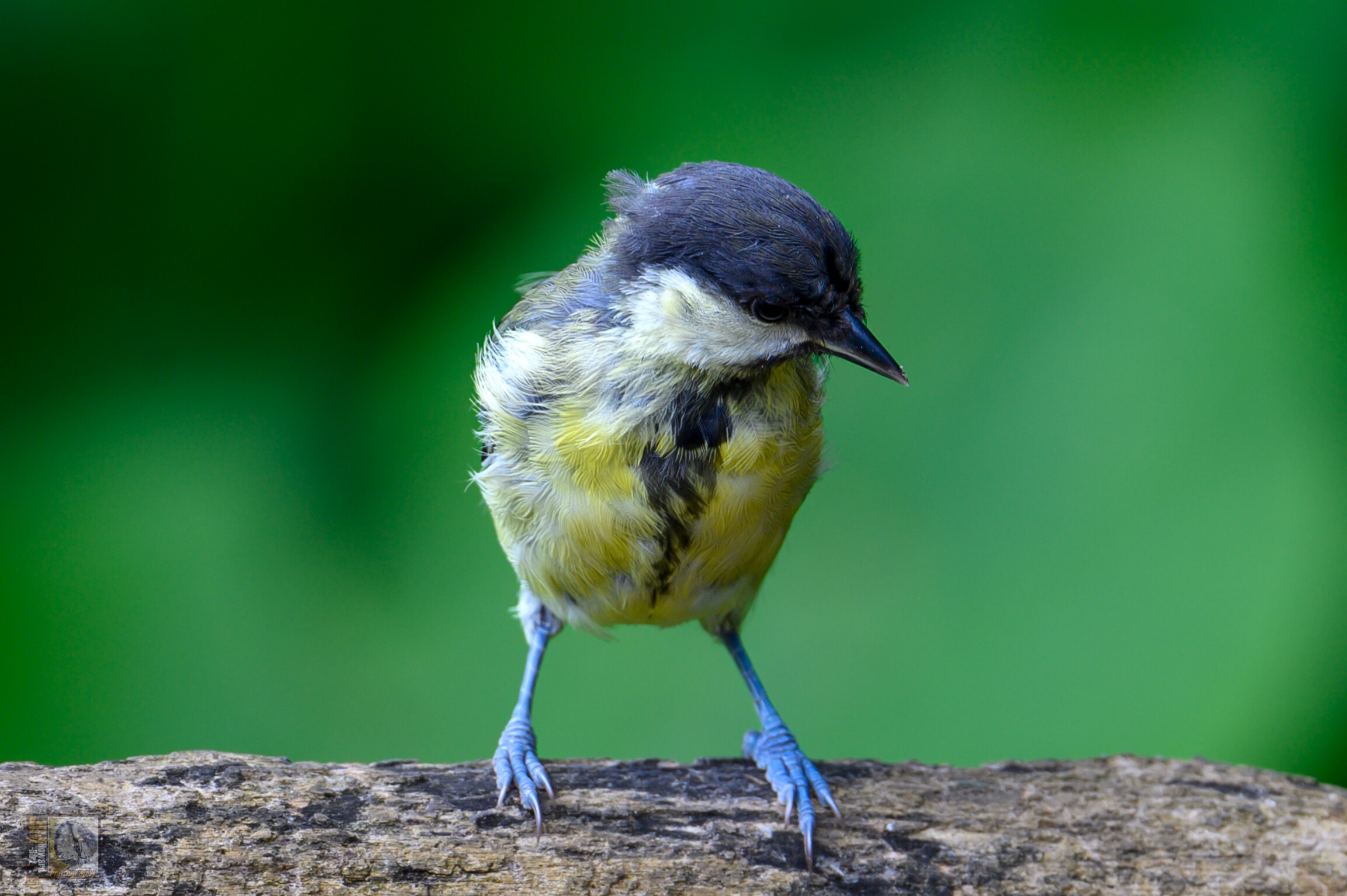 Two photos of a Great tit. The first a Juvenile and the second an adult