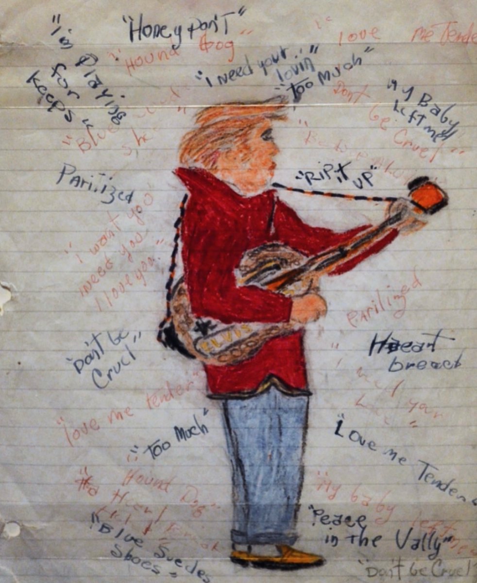 This is a drawing of Elvis Presley by a 14-year-old Jimi Hendrix after seeing him in concert. https://t.co/gSQvdJwCbM