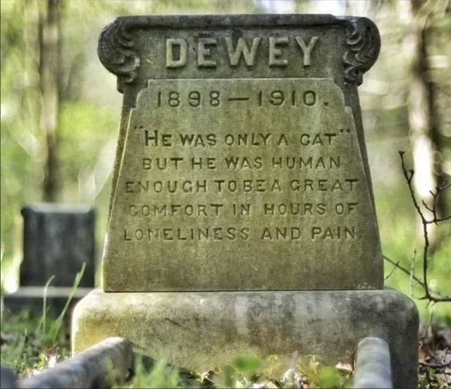 Dewey the cat died in 1910 and meant enough to his owner to be honored with a gravestone that stands today over a 114 years later https://t.co/R6n8PqYnL5