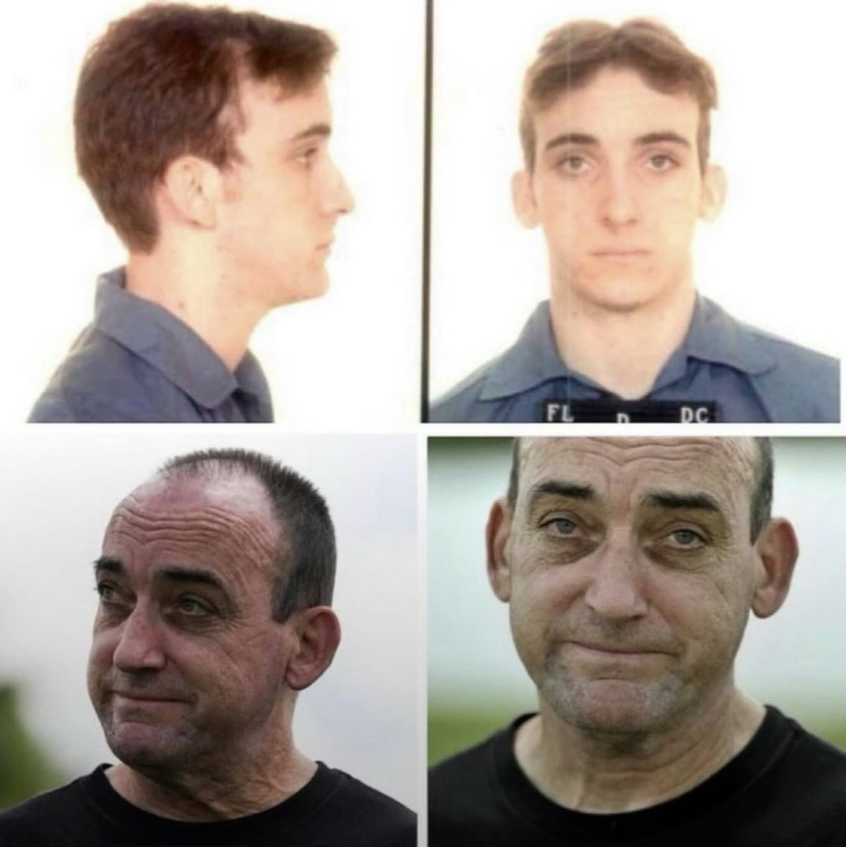Robert DuBoise on the day of his arrest at age 18, and the day he was freed from prison by DNA at 56.