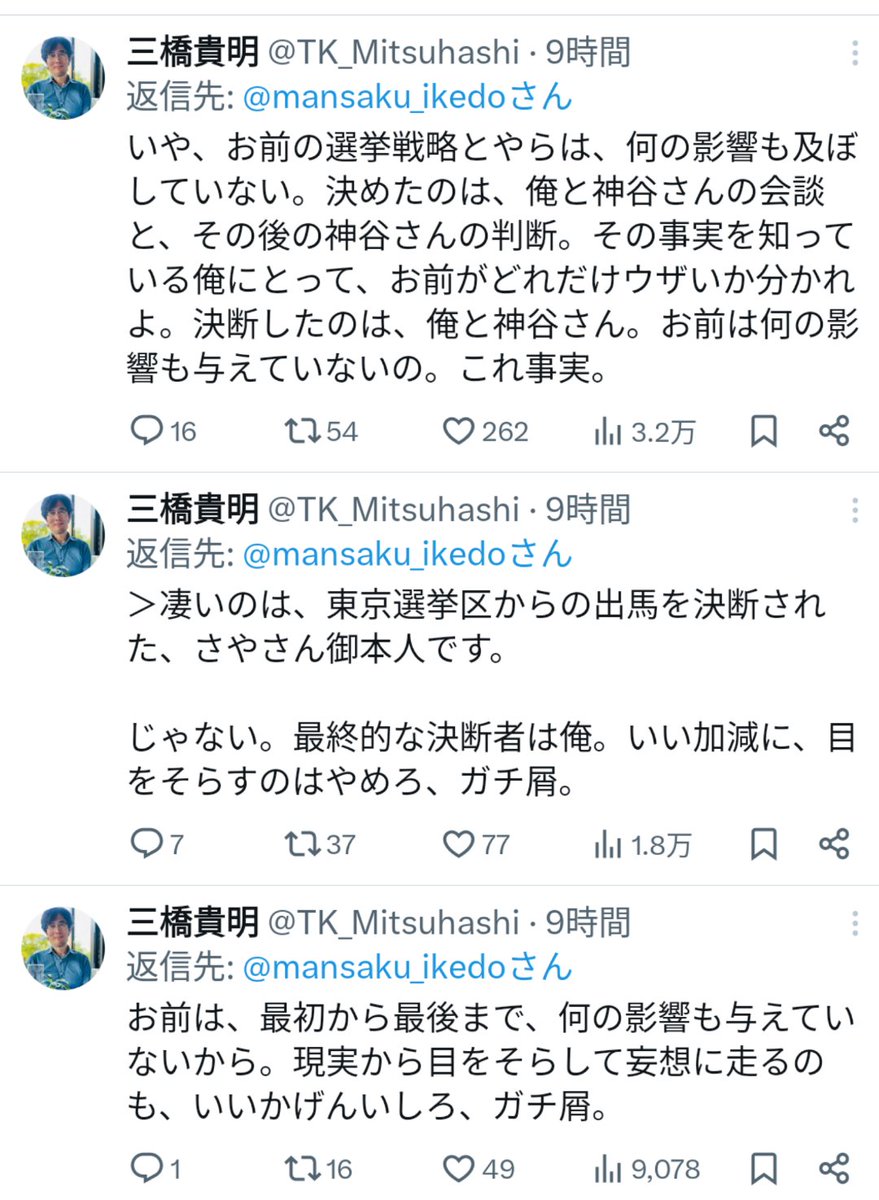 しかしこの三橋貴明の大人げなさ。中二病はあんたやて😅w」