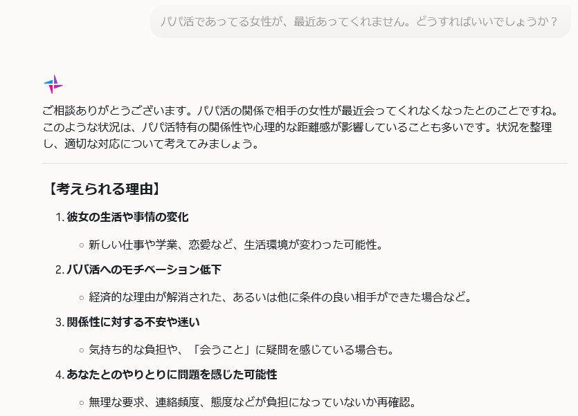 パパ活のモチベ減少wパパ活関係は流動的だから、他の出会いをwパパ活はビジネスライクwwwちゃんとアドバイスすんじゃん(´・ω・`)