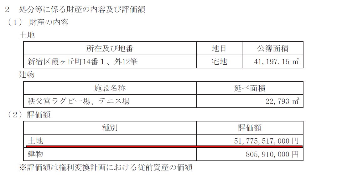 「秩父宮ラグビー場などを518億で譲渡!?許せん!」ってw明治神宮横の広場w割と一等地といえるところだろうが(個人的バイアスでは、品野町付近って「東京の闇」wって感じだがwww)、518億だからさ(面積がわからんがw)けっこうな額よね?wいや、1千億円のところを518億に値切ったんです!っていう国賊方式だとかさ、なんかこの土地を518億では不適切だという根拠がないと、問題なのかどうかもわからんのだがwww