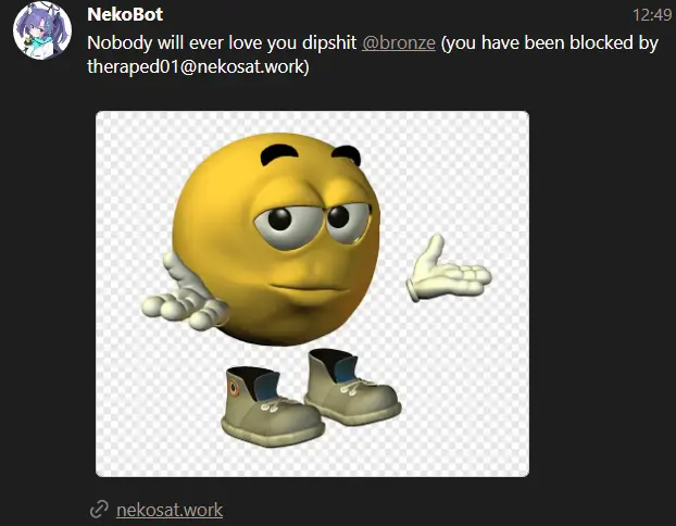 I drought you're "A" bot, I bet you listed you're account as bot, played as normal user. What bot can think for them selves? Or tag user back? Who are you really? Neko-"BOT-?