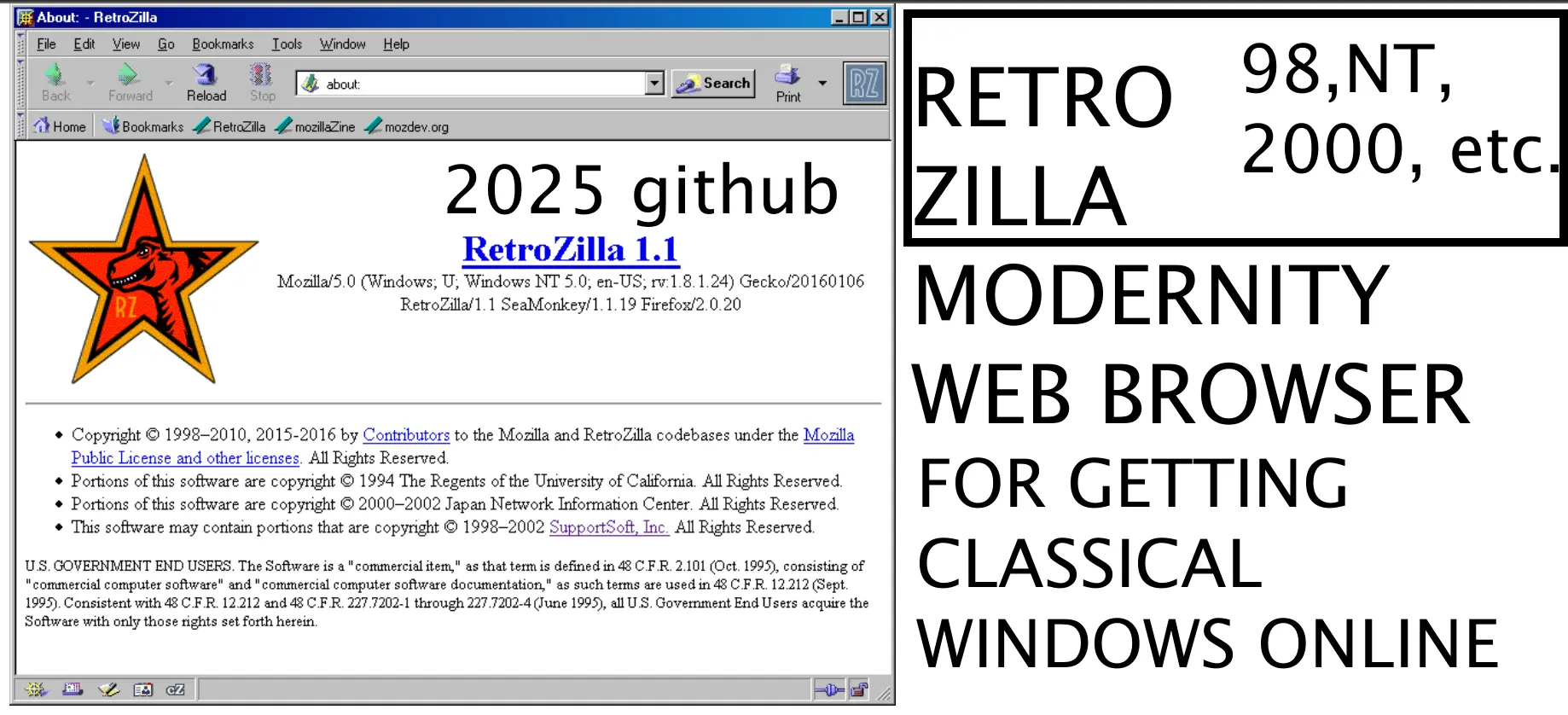 Retrozilla webbrowser https://duckduckgo.com/?t=h_&q=retrozilla&ia=web making classical windows online for future users and lovers of originality windows operating systems to run you're computers.