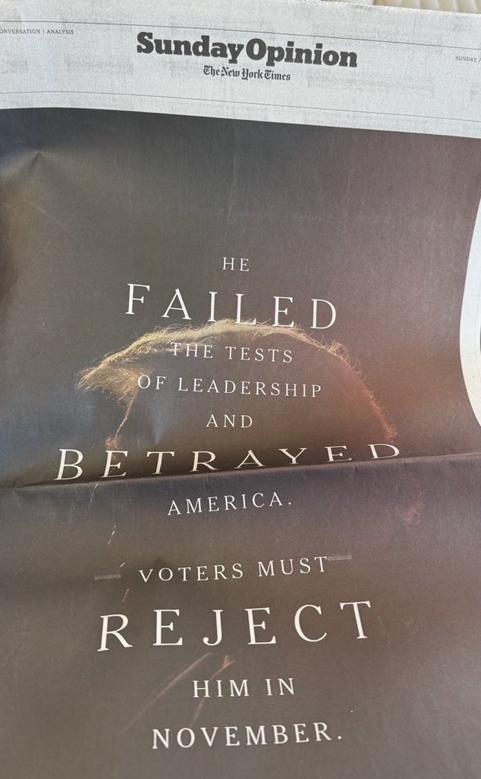 这是《纽约时报》在川普总统被刺次日刊出的一个整版⬇️