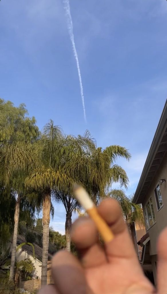 I went to smoke a cig today & this singular chem trail appeared shortly after.
