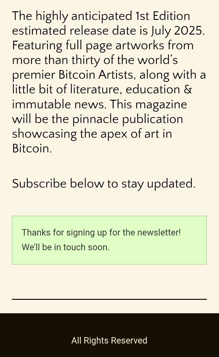 The highly anticipated 1st Edition estimated release date is July 2025. Featuring full page art from over thirty of the world’s premier Bitcoin Artists.