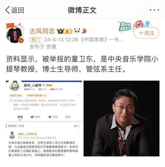 🔥【畜生爆光 !】昨日获悉:中央音乐学院管弦系主任童卫东已确诊为艾滋病,纪委正在取证查实其受举报内容。目前院长俞峰状态不佳,恐受牵连。