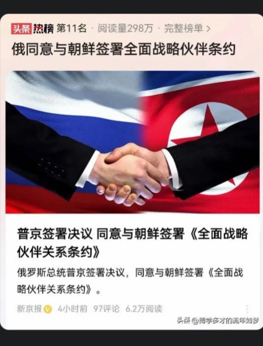 🔥 普京与金正恩签署两国《全面战略伙伴关系条约》,条约中好象有一条,俄罗斯全部奥运成员,加入朝鲜国籍,包括教练员,运动员,体能师,康复师,陪练员,代表朝鲜,参加2024年法国奥运会。