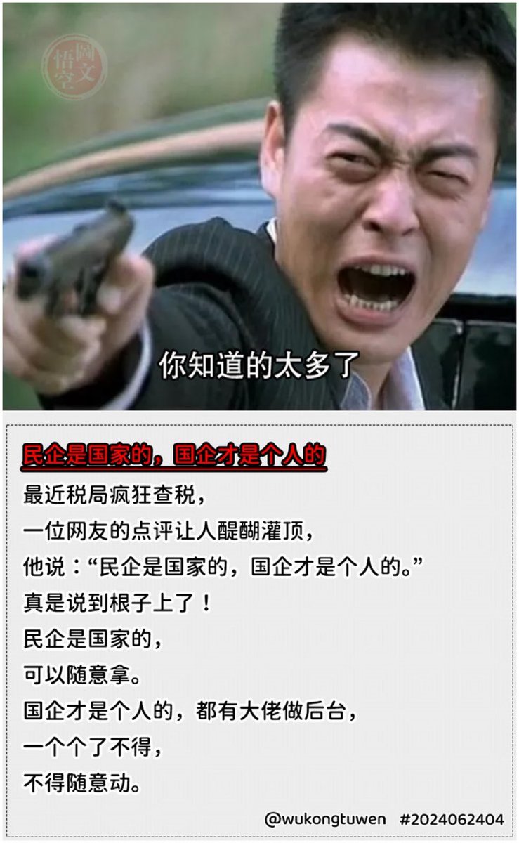 他说:“民企是国家的,国企才是个人的。”