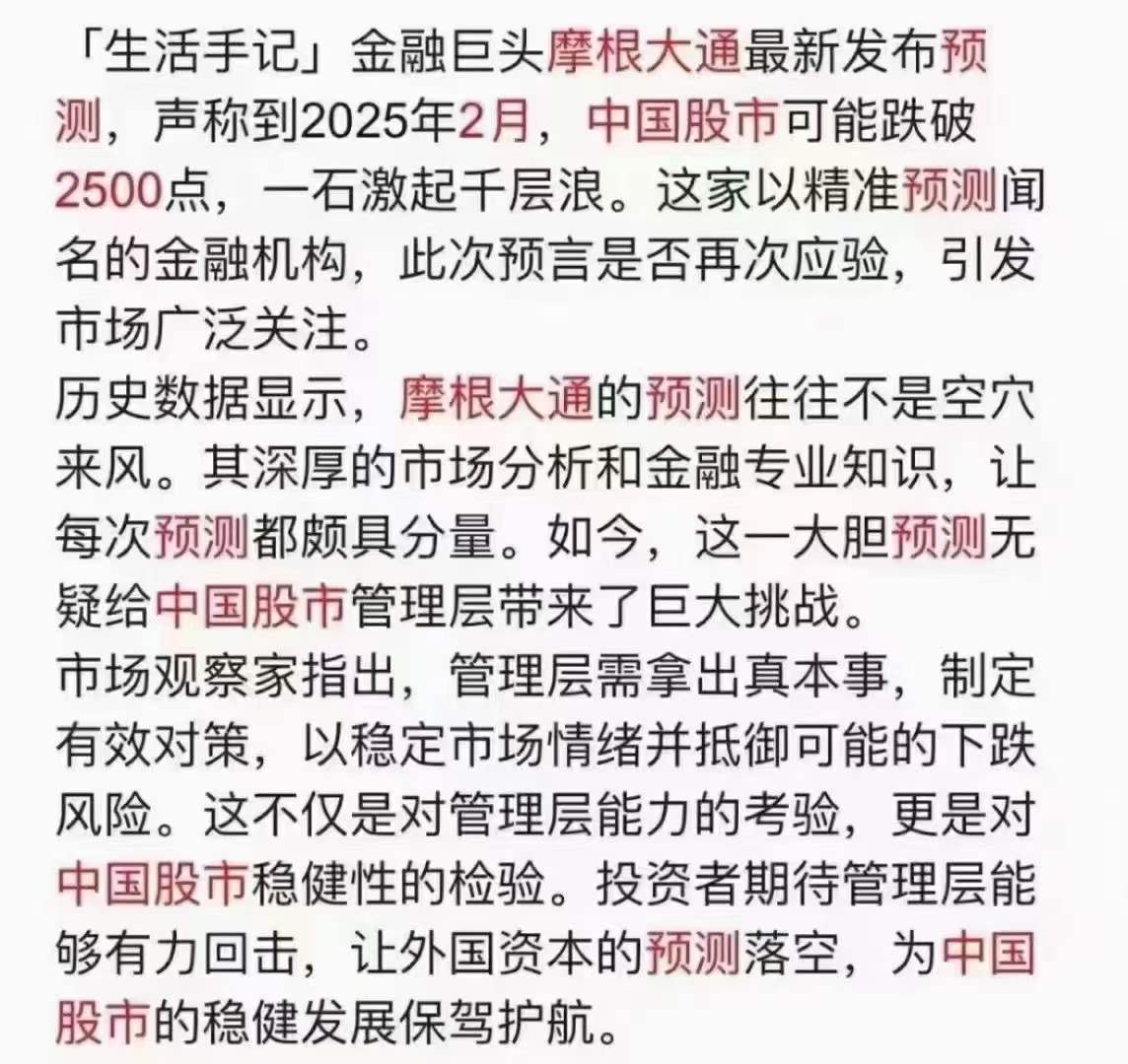 💥 摩根大通:2025年2月,中国股市可能跌破2500点! https://t.co/sAkX5o58Sx