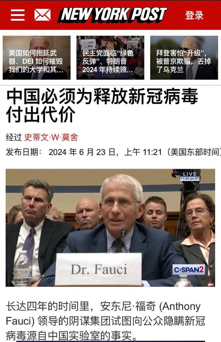 🔥 纽约邮报:中共必须为释放COVID-19病毒付出代价!