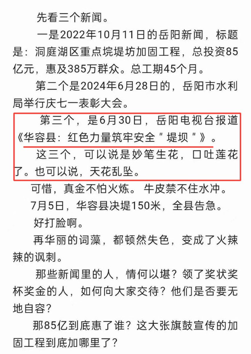 🤔 海外爆料君一眼看出其实就是这个“红色力量”毁了洞庭湖大堤,害了华容县的老百姓❗️