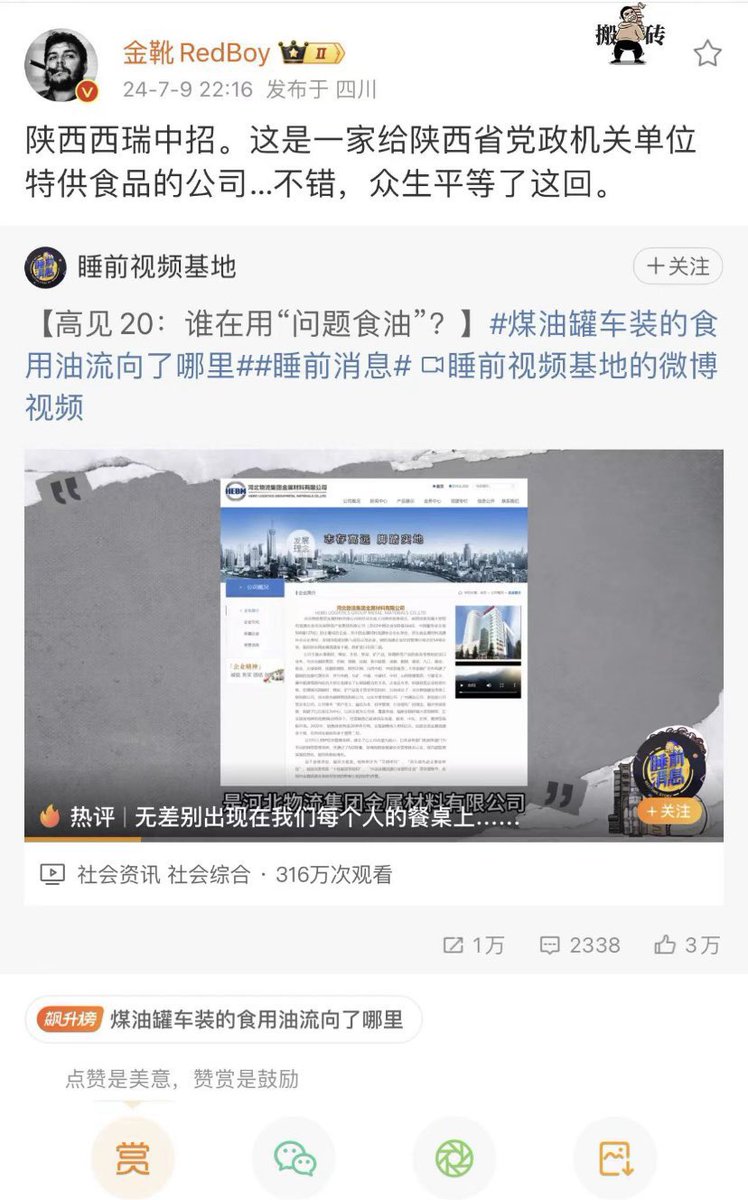 (原标题为《装完化工油又装食用油,这与投毒有什么区别》) https://t.co/R6VNsY9vdx