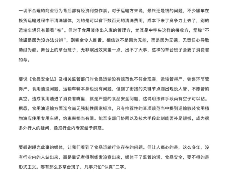 🔥 中国人终于知道中国从来没有过食用油专用油车, 中国人的食用油都是用柴油油罐车运送,而且装运食用油前从来都不清洗油罐。