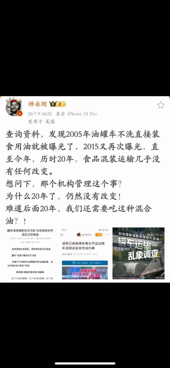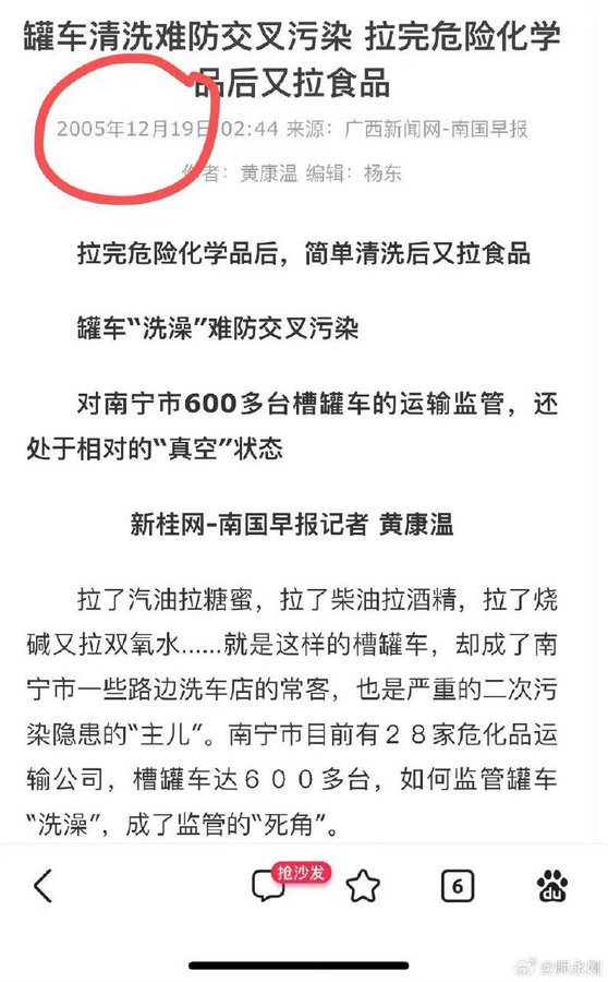 🔥 既装煤油又装食用油的罐装车,很多年前就有了!有网友认为,「疫苗后遗症」即将成为中国大陆下一场社会动荡的导火索,而中共官媒此时集体热炒“油罐车事件”,就是中共官方授意,要把癌症高发嫁祸于油罐车司机!