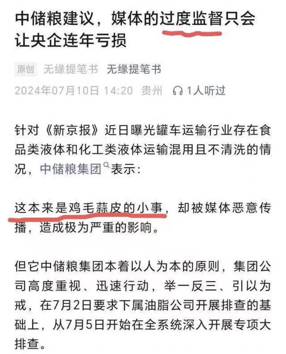 🔥【网友投稿】中储粮建议,媒体的过度监督只会让央企连年亏损!