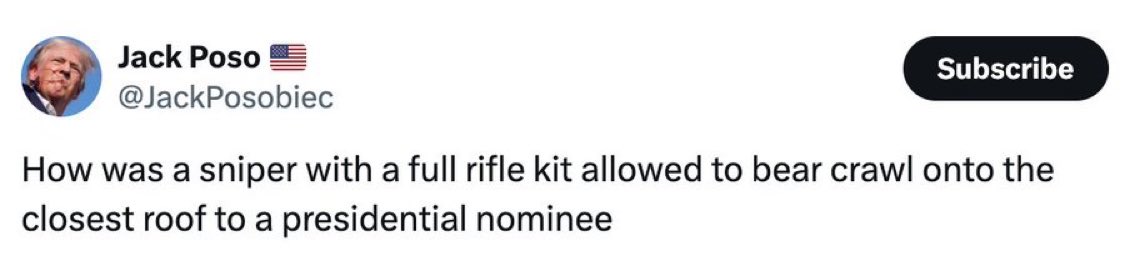 🤔一個攜帶【全套步槍裝備】的狙擊手,怎麼會被允許慢慢爬上距離總統提名人川普最近的屋頂上呢? https://t.co/nzKs5O2e5q
