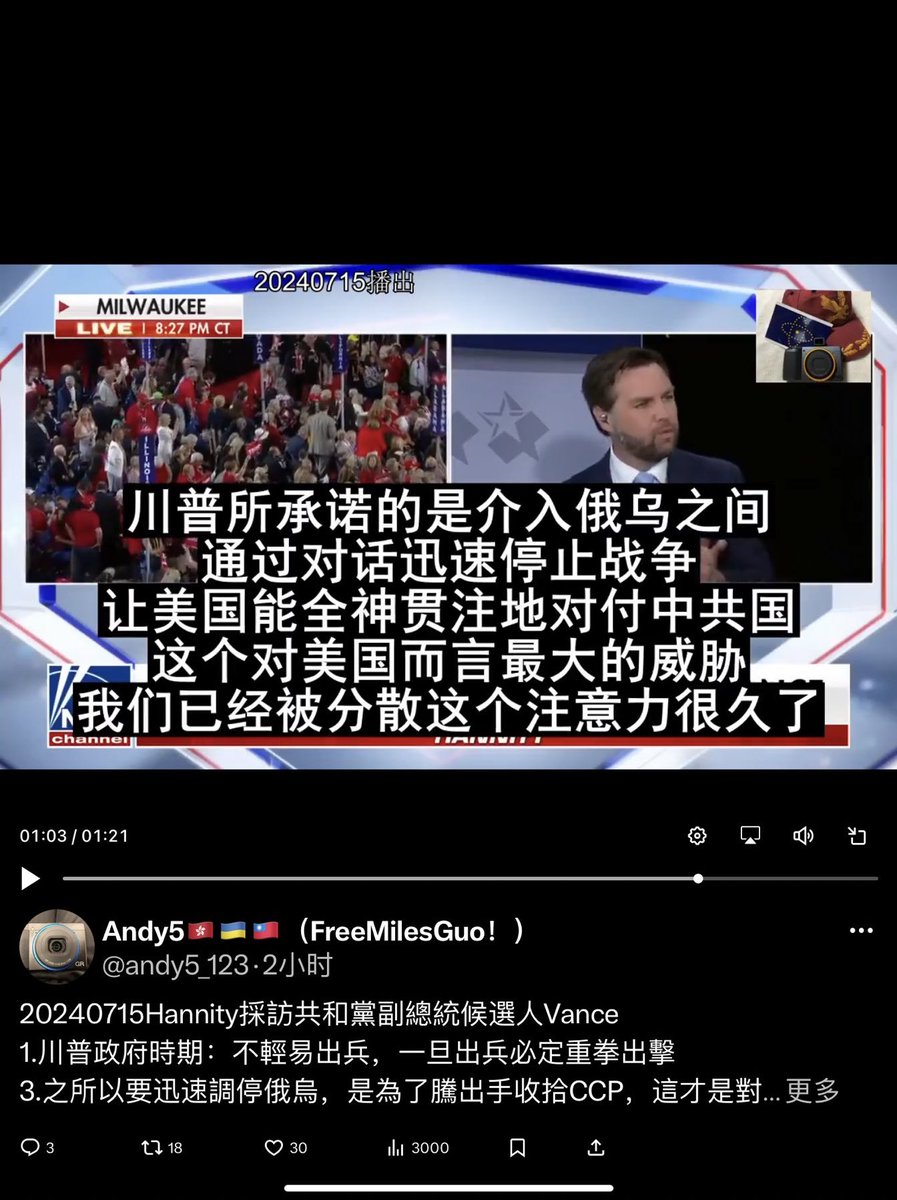 川普所承诺的是介入俄乌之间,通过对话迅速停止战争,让美国能全神贯注地对付中共国,这个对美国而言最大的威胁,我们已经被分散这个注意力很久了❗️