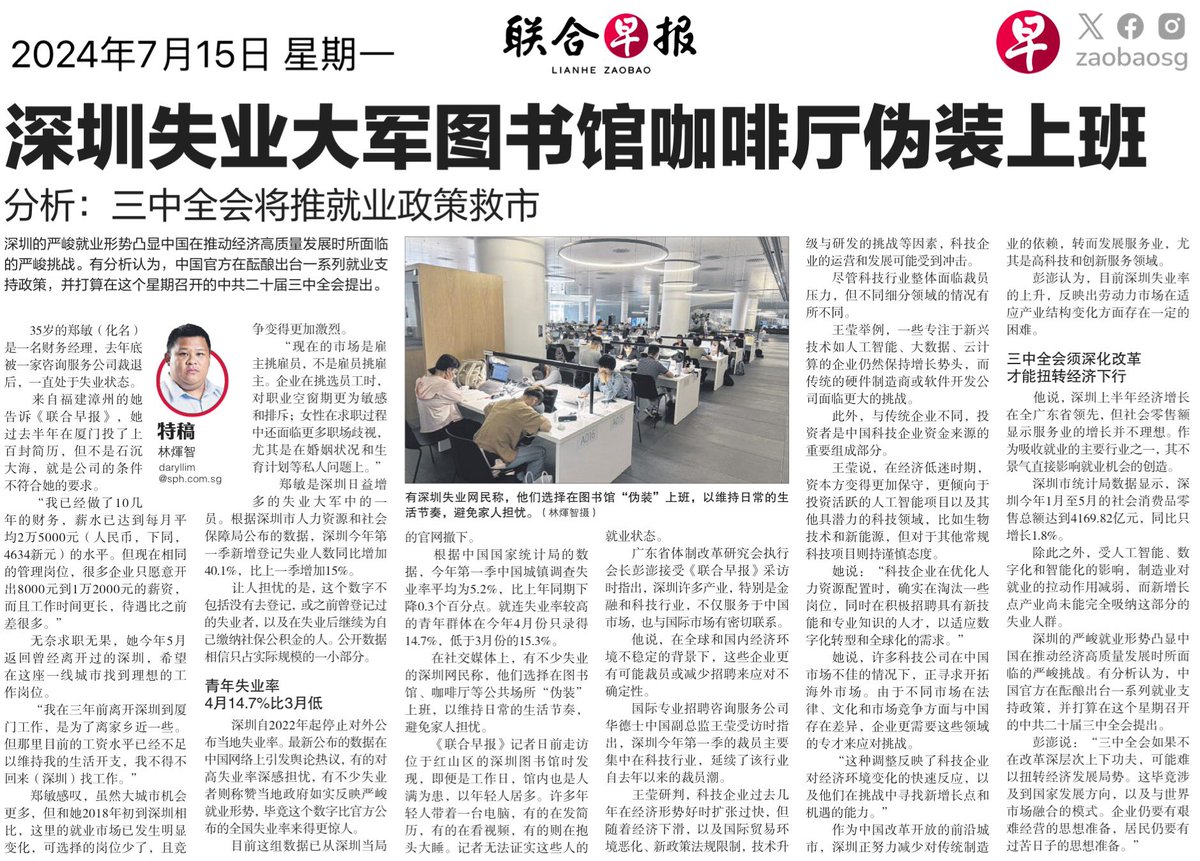 🎯 转:隐匿在深圳图书馆里的失业打工人大军。有不少失业的深圳人士选择在图书馆、咖啡厅等公共场所 “伪装”上班,以维持日常的生活节奏,以避免家人担忧。据深圳人力资源与社会保障局的数据,青年失业率4月为14.7%。这个数字比中国统计局公布的数据更为惊人!