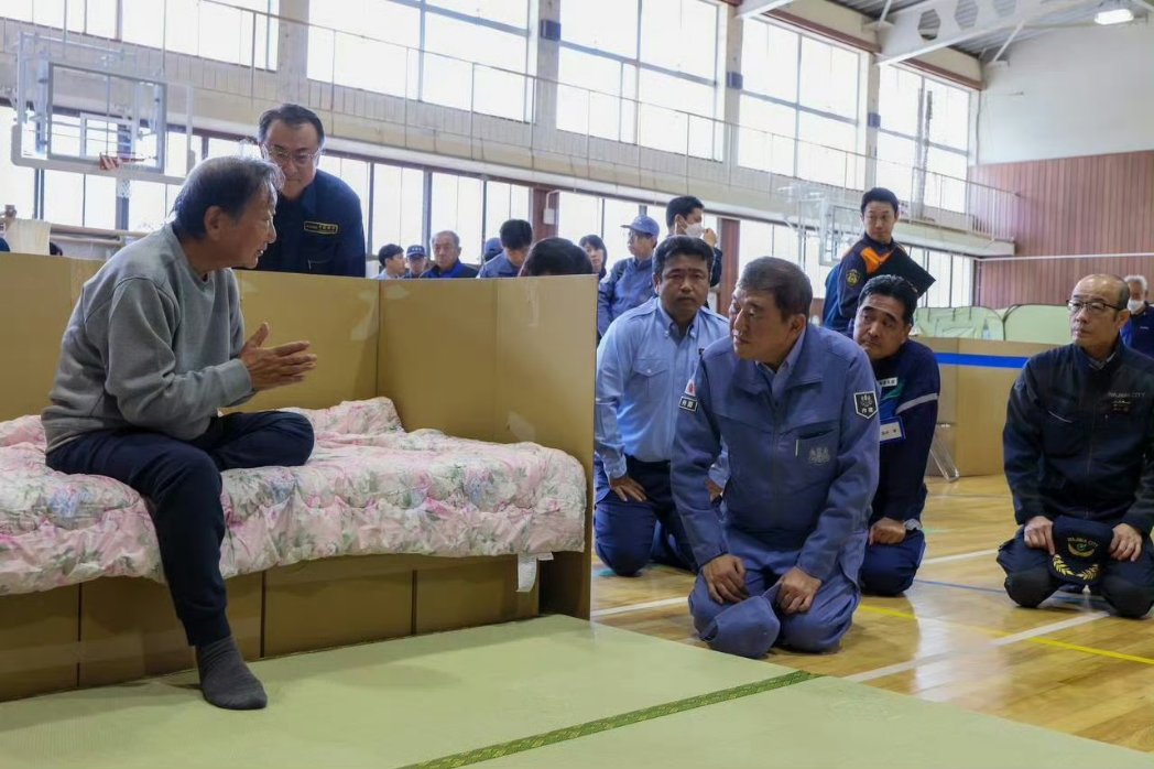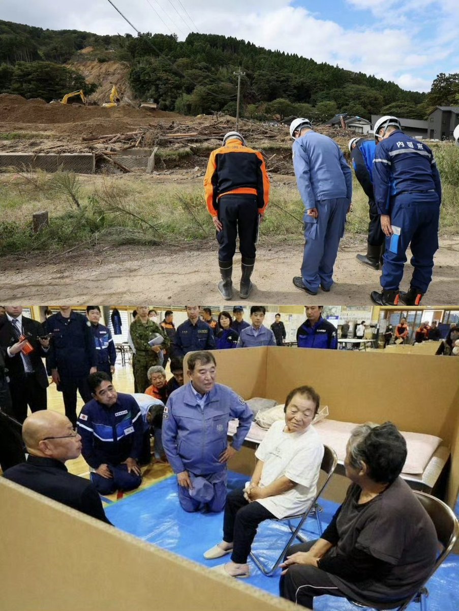 日本首相石破茂视察能登半岛地震灾区。堂堂一国领导居然就这样跪下了,成何体统?💢 https://t.co/CXMmd6ekUA