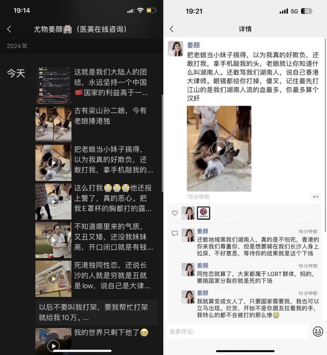 近日,网上流传的一段视频显示,一名跨性别女性在海底捞疑似遇到了支持香港独立的男子,因此暴揍该男子。她表示,尽管都是LGBT群体,但是“要搞国家分裂你就是死的下场”。 https://t.co/B1NyH86Uw6