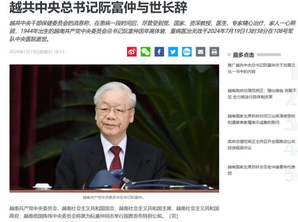 🔥 越共总书记阮富仲突然死亡,越南迎来新的历史机遇! 中國機遇何時到來?🤔 https://t.co/fzOx6Zzqi2