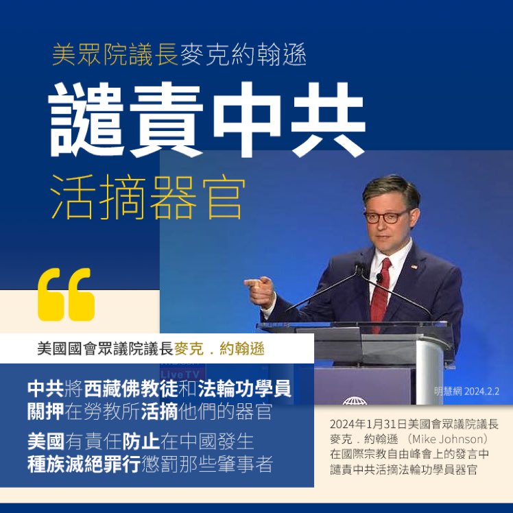 🔥美国国会众议院议长麦克﹒约翰逊 公開譴責中共活摘器官😡💪 https://t.co/YVch2NMMyA