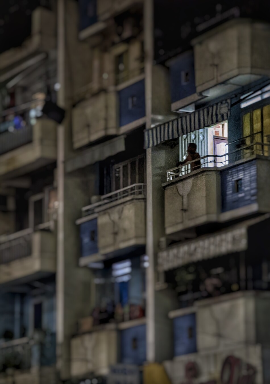 A solitary resident takes a moment on the balcony of their apartment in Nha Trang, #Vietnam. #Night #StreetPhotography #Solitude