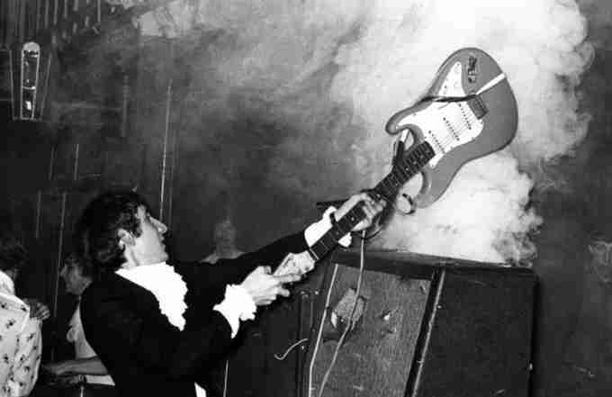 Pete Townshend of the Who smashing his guitar at Granby Halls in Leicester, 1967. Photo by Chris Morphet.