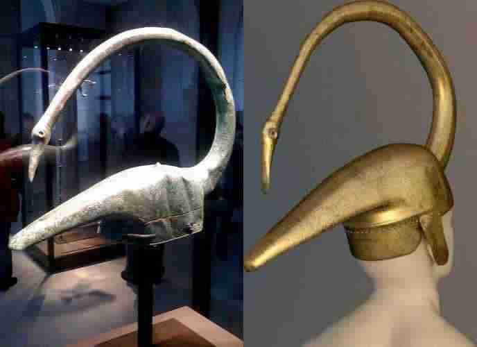 A Gallic bronze helmet in the shape of a swan, found in Tintignac, France, in 2004.