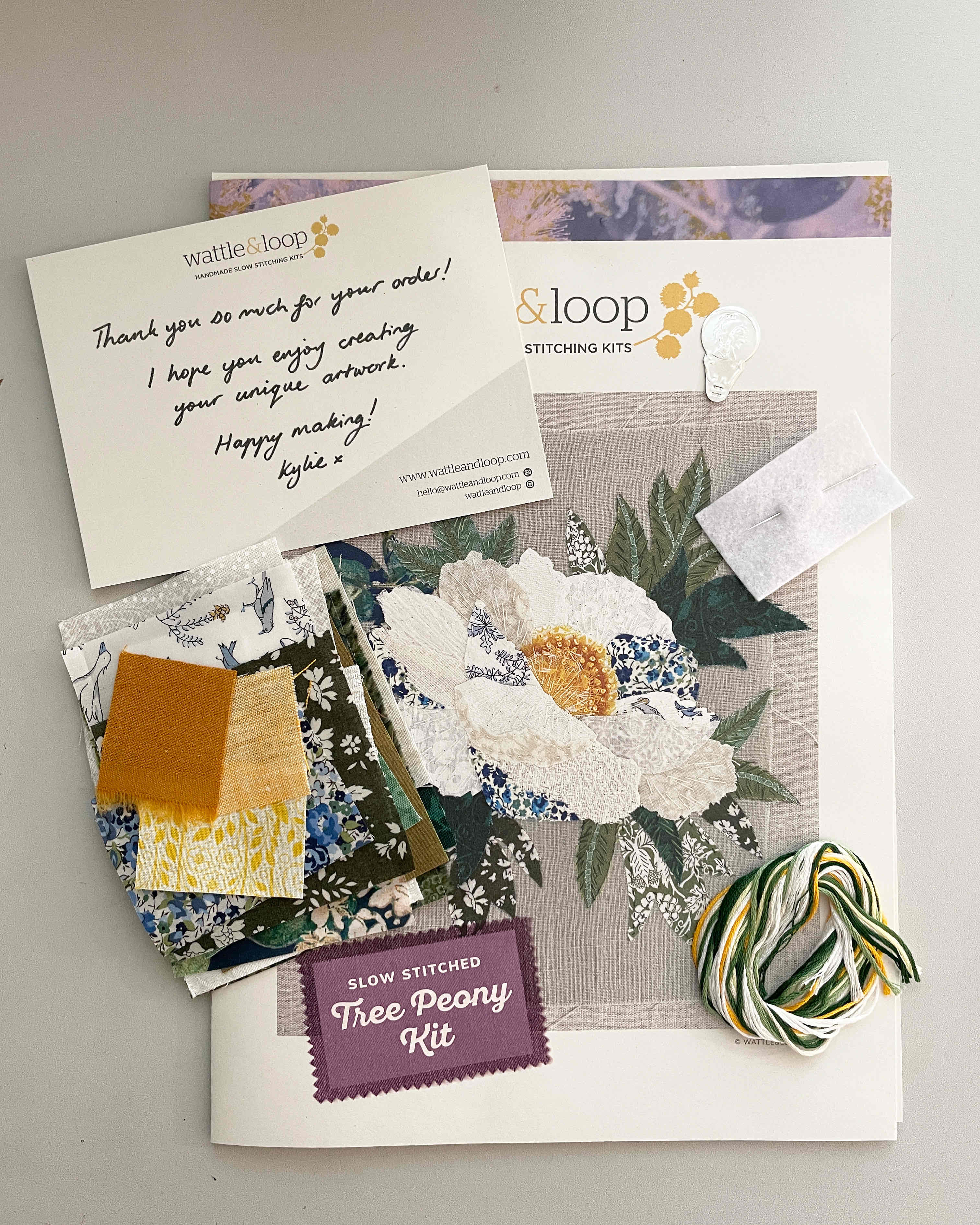 A tree peony! It’s a slow stitching kit from https://wattleandloop.com - I don’t like using a sewing machine, but love fabric patterns so wanted to try this. The kit comes with everything!