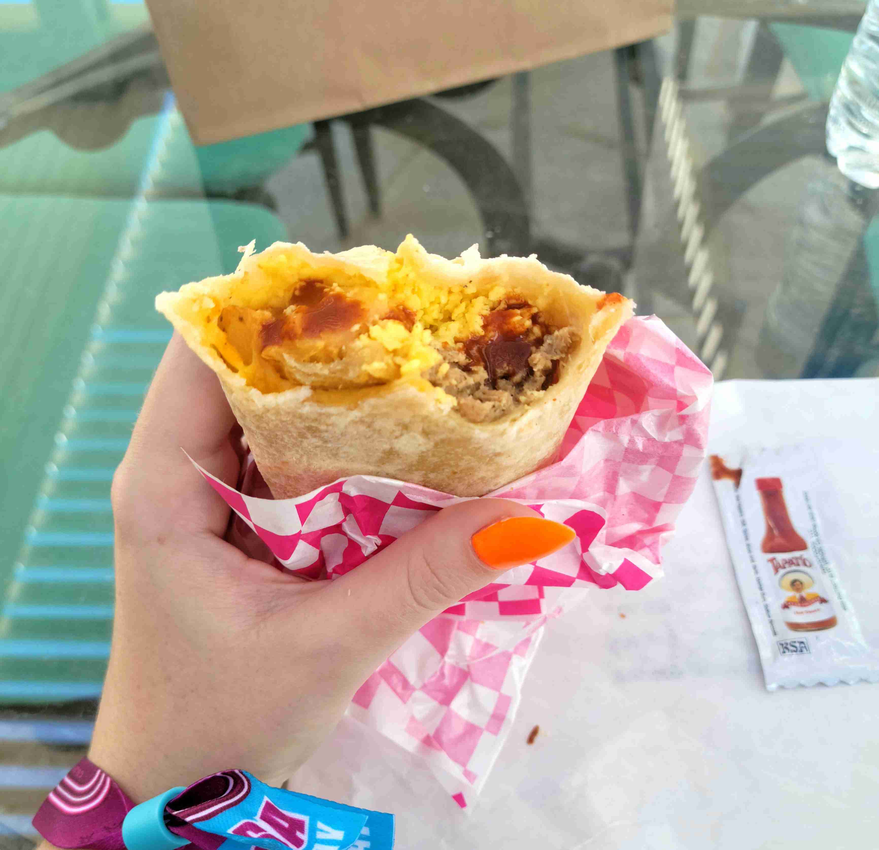 nostr:nprofile1qqszvkac7k2phlmpnhy4any84u6tgcnssvcgw0g2lf3pslg4afgst6cpzdmhxw309ucnydewxqhrqt338gmnwdehm9z808 my shitty breakfast burrito. Two fried eggs seasoned, 2 week old hamburger meat, chunks of cheese that didnβt melt and hot salsa wrapped in a warm tortilla