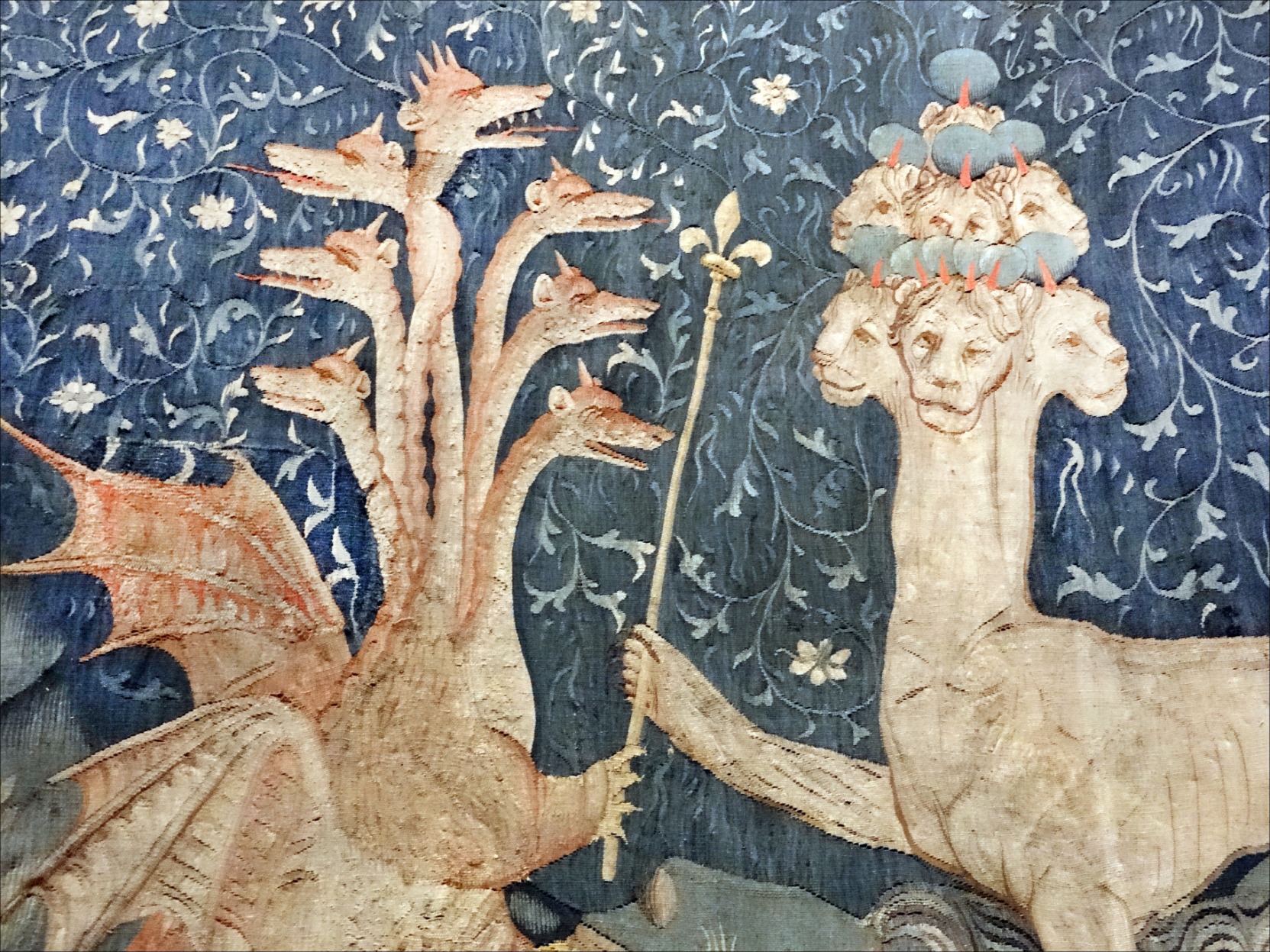 "A beast with seven heads and ten horns riseth out of the sea, to whom the dragon giveth his power, wherewith he blasphemeth God, and vexeth the saints."