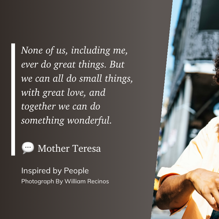 https://en.wikipedia.org/wiki/Mother_Teresa https://john.philpin.com/search-space/?q=%F0%9F%95%B5%F0%9F%92%AC+Inspired+By+People