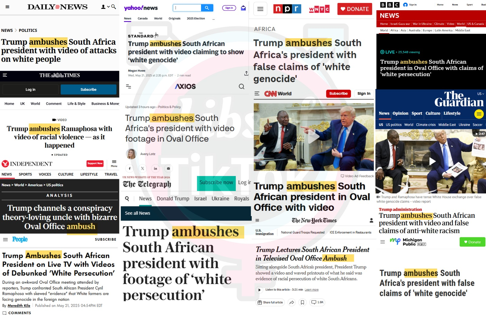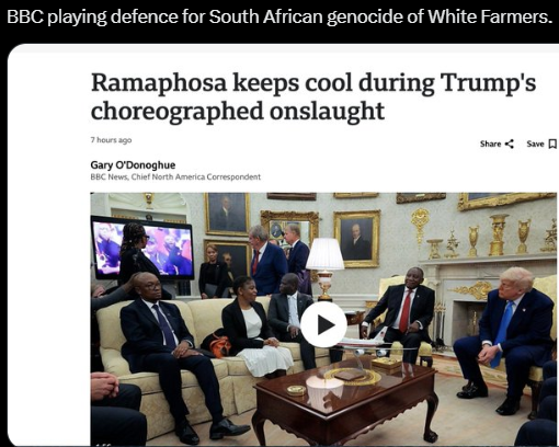 Trump “ambushed” the president of South Africa by playing a video montage of South African leaders calling for White genocide.