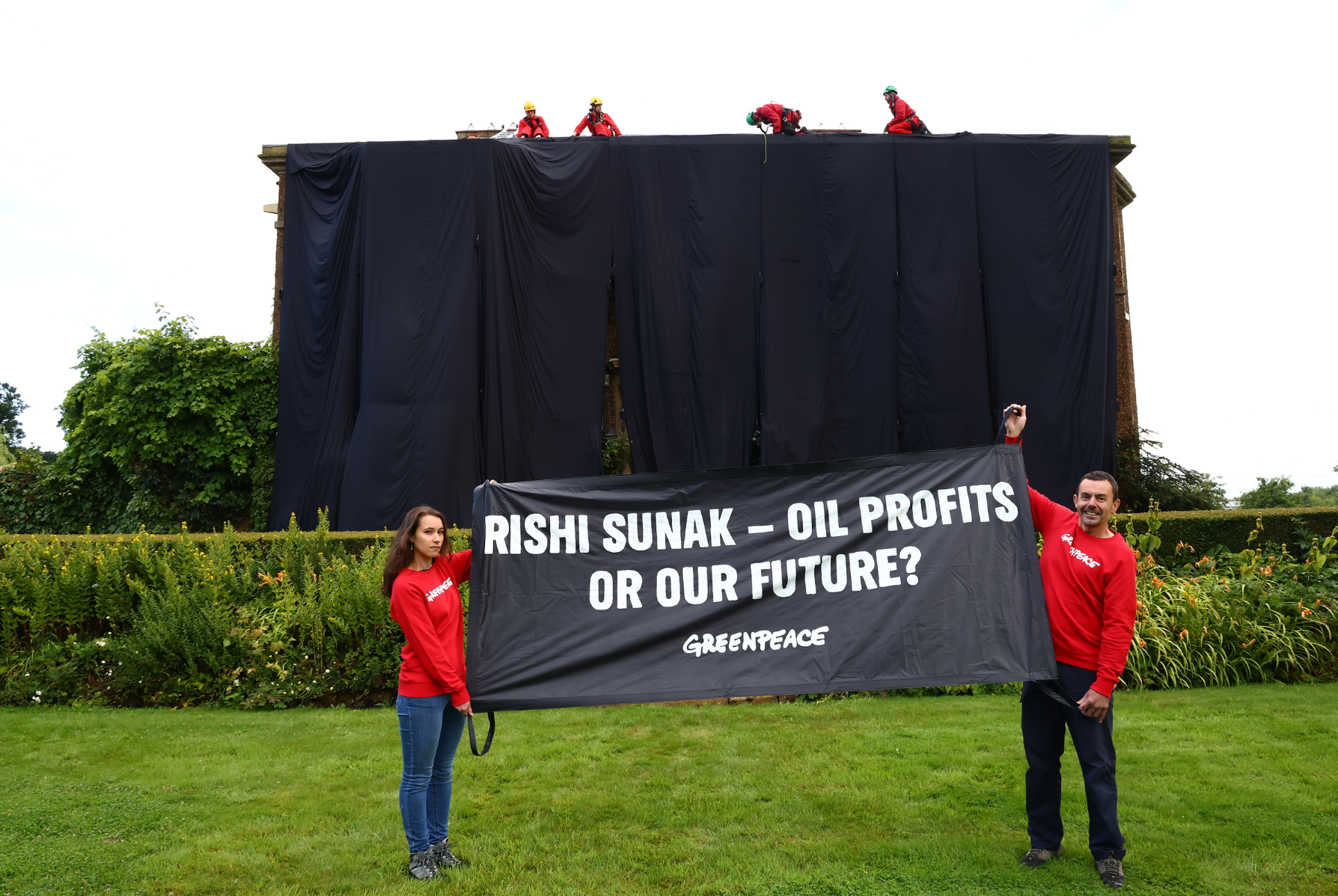 Rishi Sunak's Home Covered In 'Oily-Black Fabric' In Eco-Protest From Greenpeace
