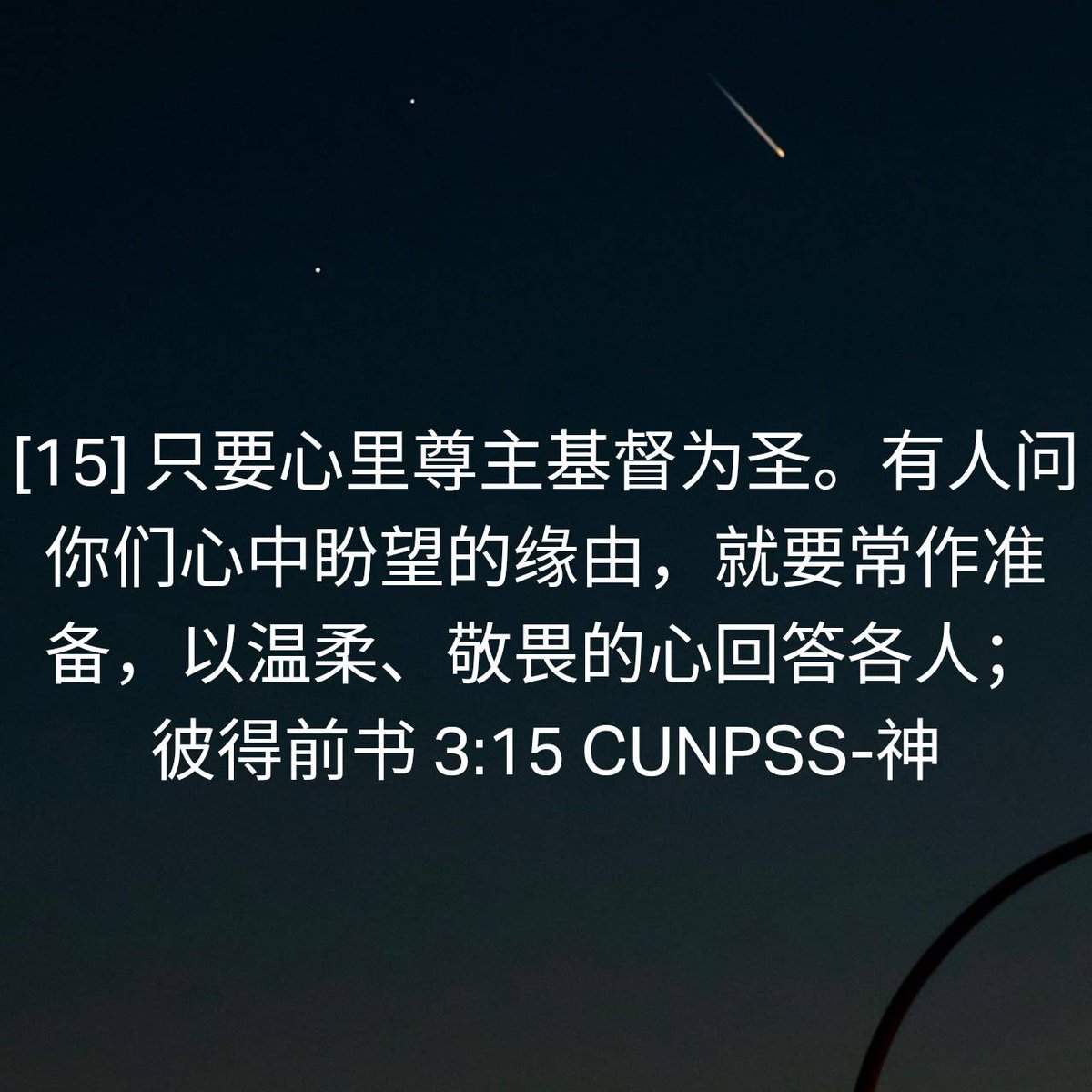 [15] 只要心里尊主基督为圣。有人问你们心中盼望的缘由,就要常作准备,以温柔、敬畏的心回答各人;