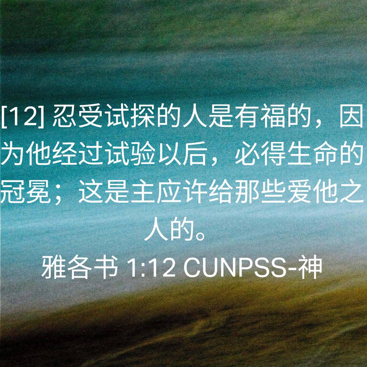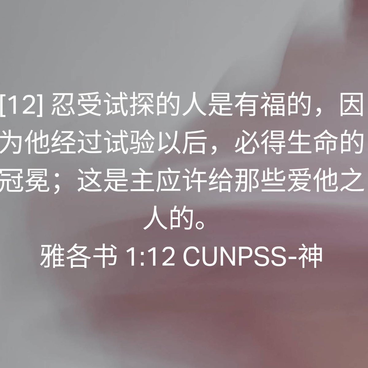 [12] 忍受试探的人是有福的,因为他经过试验以后,必得生命的冠冕;这是主应许给那些爱他之人的。