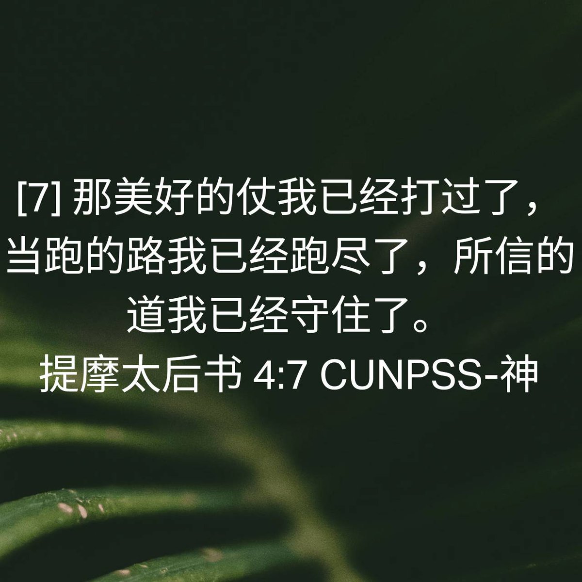 [7] 那美好的仗我已经打过了,当跑的路我已经跑尽了,所信的道我已经守住了。