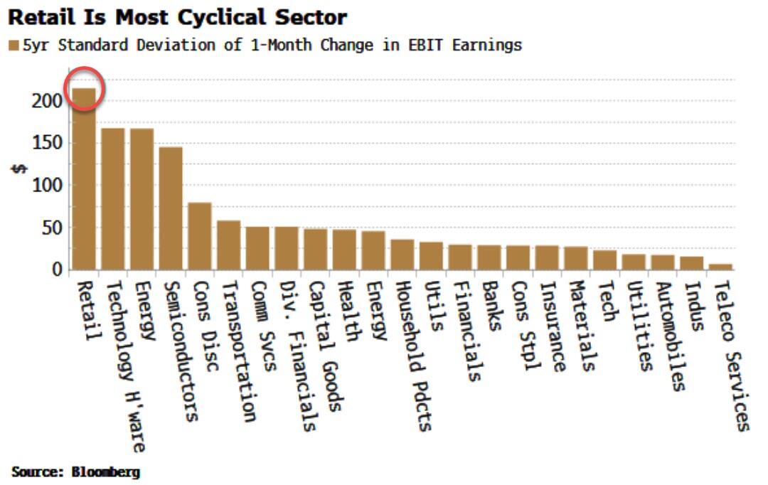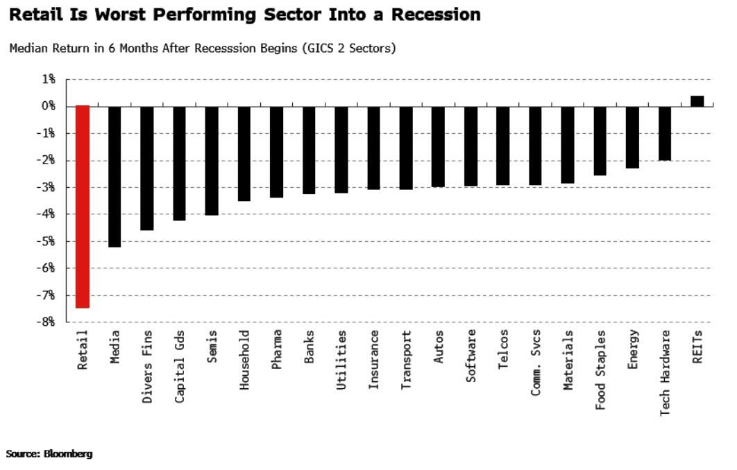 However, retail is primed to be one of the most underperforming sectors in any recession.