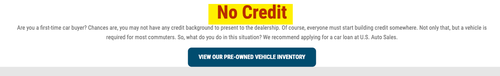 US Auto Sales boasts on its website "no credit" is needed to obtain a vehicle.